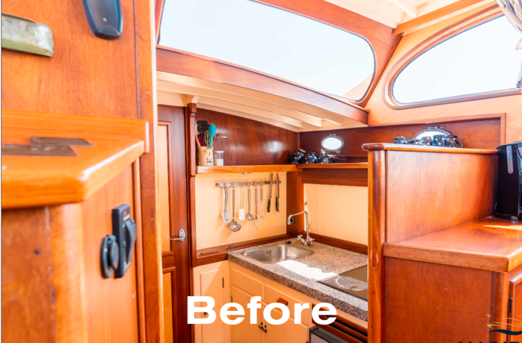 The new galley includes all the appliances you would expect today. The bathroom is comfortable and spacious, with a full-size shower. All technical systems have been replaced. And key details, like the original portholes and anchor winch, have been carefully restored.